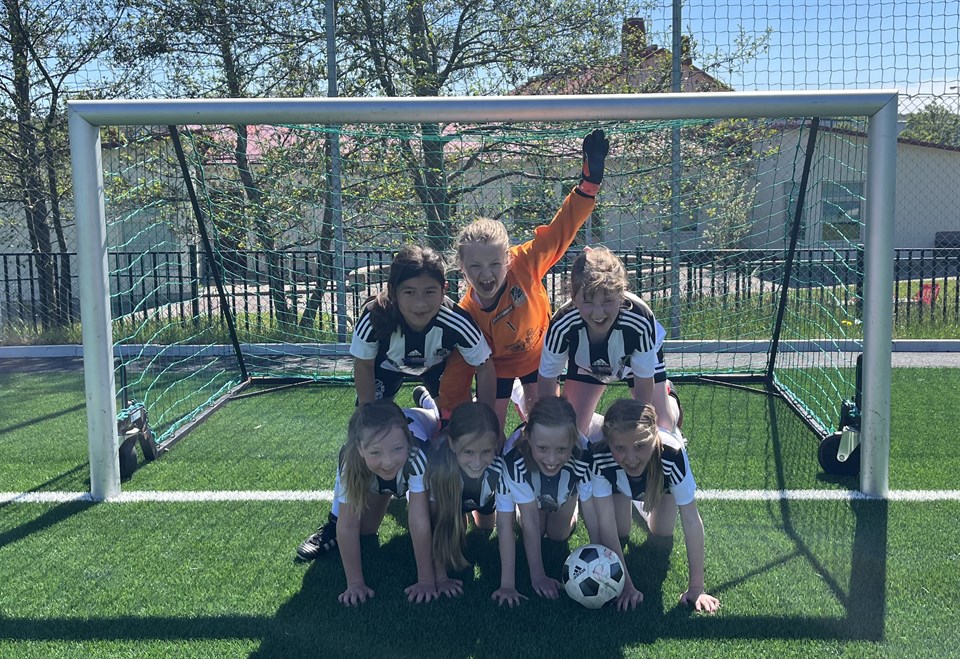 Det var sju taggade tjejer som anlände till Eklanda och möttes av strålande sol och en härlig bortapublik! Några av de saker vi tränat extra mycket på den senaste tiden är t ex att dra isär laget och skapa ytor när vi har bollen, samt att krympa ihop och göra det svårt för motståndarna när de har bollen. Detta är svårt och kräver tajming och det var därför så himla kul att se hur bra tjejerna bemästrade detta under matchen! Flertalet gånger tog de emot bollen med en touch, tittade upp och slog en superfin, öppnande, passning till en annan tjej som rört sig till en fri yta. Ren poesi för oss tränare När detta dessutom kryddades med en jäkla inställning och kämpaglöd så var dagen komplett. Det var varmt, det var stundtals ganska hårda tag. Våra tjejer stod upp för varandra på ett imponerande sätt och kämpade verkligen hela matchen. Vi pratar även en del om att det viktigaste när man spelar och tränar fotboll är inte hur det går. Eller om man gör mål. Eller om man släpper in mål. Det enda man kan påverka är sin egen prestation. Har man gjort sitt allra bästa så kan man, och ska man, vara nöjd. Mer kan man inte göra. Då har man ställt upp för sina lagkamrater på bästa sätt och då ökar chansen att det går bra och att man har roligt tillsammans. Tjejerna är verkligen superduktiga på att anamma detta och peppar varandra allt som oftast när någon har det lite tuffare. Hoppas de kan få med sig detta i livet, vore magiskt!